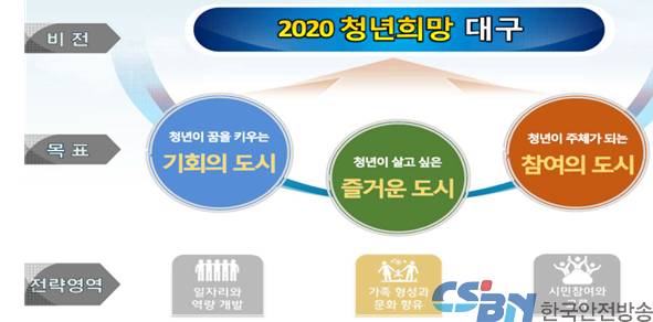 (한국안전방송) 대구광역시는 1월 16일,『2020 청년희망 대구』(공식명칭 : 제1차 대구광역시 청년정책 기본계획(2017~2020), 연구수행기관 : 대구경북연구원)를 발표하였다.