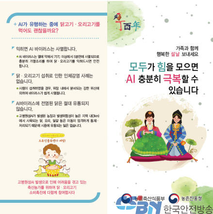 (한국안전방송) 농촌진흥청은 26일 전주시외버스터미널, 전주역, 익산역 등 3개소에서 설맞이 귀성객을 대상으로 고병원성 조류인플루엔자(AI) 확산 방지와 가금육 소비 촉진 홍보를 실시한다고 밝혔다.