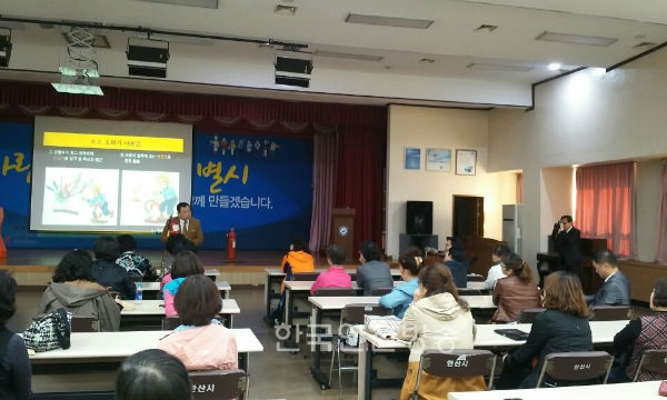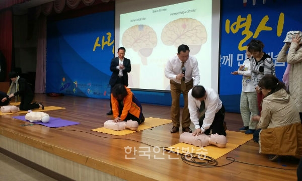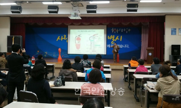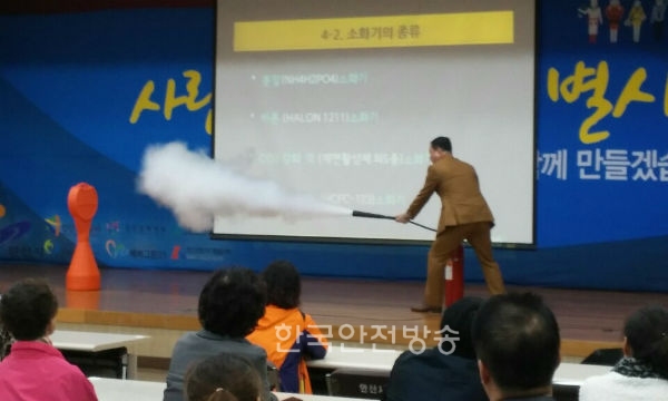 이번 강연은 '가족의 생명안전 누가 책인질 것인가?'라는 주제로 생활속에서 안전사고의 위험이 높은 전기, 가스, 화재 그리고 갑자기 일어날 수 있는 긴급 상활에 대처할 수 있는 상황대처로 심폐소생술, 소화기 사용법 등을 참여자가 직접 체험 실습하는 강연으로 진행됐다.