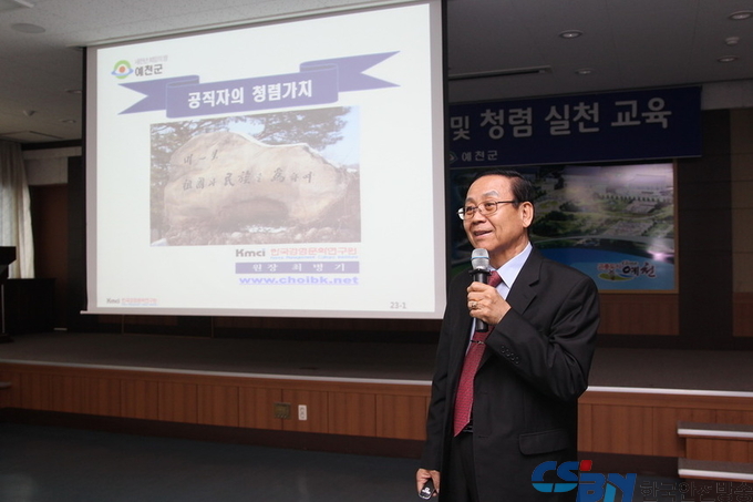 (한국안전방송) 예천군은 지난 13일 오후4시 군청 회의실에서 전직원을 대상으로 부패방지 및 청렴 실천을 위해 한국경영문화연구원 최병기 원장을 초빙해 『공직자의 청렴가치』란 주제로 특별 교육을 실시했다.