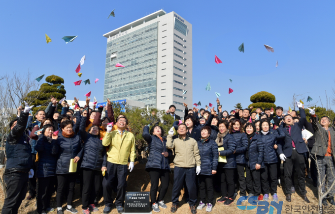 이어 공무직 전환 노동자들의 업무에 임하는 자세 등 ‘다섯 가지의 약속’이 새겨진 종이비행기를 날리며 공공의 책임과 소임을 다짐했다.