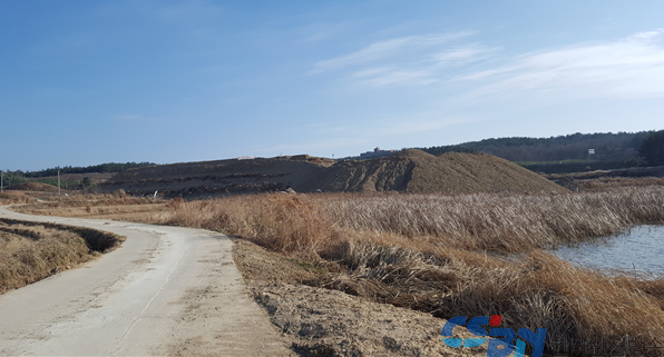 한국철도시설공단은 경북 포항시 북구 흥해읍 성곡리∼용한리 일원에 영일신항만 개장과 배후산업단지 건설을 위한 영일만신항 인입철도 노선공사를 하면서 인근 짓때이마을 인접에 길이 250m, 높이 9.8m로 흙을 쌓아 올렸다.