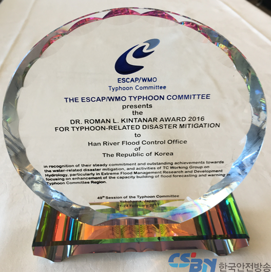 (한국안전방송) 국토교통부 한강홍수통제소는 지난 21일 태풍위원회*로부터 태풍 재해 방지 분야 최고 권위상인 ‘킨타나상’을 수상했다고 밝혔다.