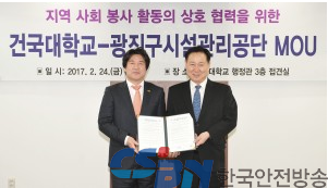 (한국안전방송) 건국대학교와 광진구시설관리공단(이사장 이명래)이 지역사회 공헌활동과 대학생들의 사회봉사활동의 상호협력을 위한 업무협약을 체결했다고 26일 밝혔다.