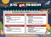 그래픽자료(경기도) 경기도는 도민 모두가 안전하고 넉넉한 추석을 보낼 수 있도록 10월 3일부터 10월 9일까지 7일간 ‘추석 연휴 종합대책’을 추진한다. 도는 종합상황실을 24시간 운영하고 비상근무 체계를 가동해 연휴 중 발생할 수 있는 불편과 사고에 신속 대응할 방침이다. 연휴 기간 불편 신고와 문의는 경기도 콜센터(☎120)를 통해 24시간 상담할 수 있으며, 진료가 필요할 경우 응급진료 상황실(☎031-8008-4745)에서 문 여는 병·의원과 약국을 안내받을 수 있다. 올해 종합대책은 ▲민생안정 ▲안전·보건 ▲문화·복지 ▲생활·환경 등 4대 분야, 19개 세부 대책으로 마련됐다. 주요 내용은 다음과 같다. ■ 민생안정 먼저 명절 물가안정을 위해 31개 시군과 함께 물가대책반을 운영해 성수품 가격 조사와 가격·원산지 표시 단속을 실시한다. 전통시장·골목상권 활성화를 위해 10월 1일부터 31일까지 경기지역화폐 구매 한도를 최소 50만 원에서 최대 200만 원까지 확대하고, 시군별 10~20% 할인 혜택을 제공한다. 사회적경제 쇼핑몰 ‘공삼일샵(031#)’, ‘마켓경기’에서는 농수산물과 사회적경제 제품을 최대 50%까지 할인 판매하고, 하나로마트 매장에