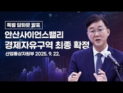 존경하는 73만 시민 여러분, 자랑스럽고 기쁜 소식을 시민 여러분께 직접 전해드리고자 오늘 이 자리에 섰습니다. 3년 전, 저는 시민들께 미래를 향해 새롭게 혁신하는 안산을 만들겠다고 약속드렸습니다. 그리고 9월 22일 산업통상자원부로부터 경제자유구역 지정이 최종 확정됐습니다. 함께 힘을 모아주신 시민 여러분께 진심으로 감사의 말씀을 드립니다. 경제자유구역 지정으로 안산사이언스밸리 지구에 자리 잡을 기업들은 각종 세금 감면과 규제 완화 등 다양한 혜택을 제공받게 됩니다. 이런 혜택을 기반으로 세계적인 기업들이 안산으로 몰려들 것이고, 안산은 글로벌 비즈니스 거점 플랫폼으로 도약할 것입니다. 그리고 우리 안산은 AI와 첨단로봇 산업이라는 날개를 달고, 고도의 연구개발이 이루어지는 세계적인 첨단 산업지구로 발전할 것입니다. 이번 경제자유구역 지정은 안산선 지하화, 신안산선 개통과 맞물려 우리 시의 미래 지형을 바꿀 새로운 패러다임이 될 것입니다. 존경하는 시민 여러분, 우리 안산은 대한민국에서 가장 경쟁력 있는 도시입니다. 그리고 그 경쟁력을 발휘할 수 있는 여건들이 하나씩 마련돼가고 있습니다. 안산에 뿌리내릴 미래 세대들이 10년 뒤, 20년 뒤, 눈부시게 성