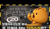 어린이 교통안전 미션 START! LEVEL 1: 아파트 단지에서는 뛰지 않기! LEVEL 2: 차가 많은 곳에서는 반드시 멈추고 좌우 살피기 LEVEL 3: 보행 중 스마트폰·이어폰 사용 금지 LEVEL 4: 도로로 뛰어들지 않기 & 무단횡단 금지 LEVEL 5: 신호 기다릴 땐 한 발 뒤로 LEVEL 6: 횡단보도 건너기 전 좌우 체크 FINAL LEVEL: 횡단보도 건널 땐 손 들고 출발 이렇게 모든 미션 클리어! 어린이가 안전한 교통 세상, 당신은 몇 단계까지 통과했나요?