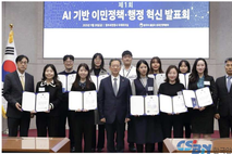 영어 뉴스 / 중국어 뉴스 / 베트남어 뉴스 / 네팔어 뉴스 법무부(장관 정성호)는 2025. 11. 28.(금) 정부과천청사 국제회의실에서 제1회 [AI 기반 이민정책·행정 혁신 발표회] 본선 심사 및 시상식을 개최하였다. 이번 발표회는 2007년부터 매년 출입국·외국인정책본부 및 소속기관 전 직원의 정책 아이디어를 발굴해 온 행사로, 올해부터는 출입국관리직 공무원들이 AI를 이민정책·행정에 적극 활용하도록 유도하고 이를 통해 혁신적 제안을 발굴하고자 [AI 기반 이민정책·행정 혁신 발표회]로 확대 · 개편하였다. 지난 18년(27회)간 실시한 발표회에서 선정된 196건의 수상 과제 중 “내국인의입국심사인 날인 생략”, “체류기간만료 예고 통지문 발송 개선 방안”을 포함한 109건(55.6%)이 실제 정책·행정에 반영되는 등 현장 직원의 아이디어가실질적인 행정 개선으로 이어지는 괄목할만한 성과를 거두었다. 올해 열린 제1회 AI에 기반한 혁신 발표회에는 총 81건의 과제가 제출되었고, ″AI와 빅데이터를 활용한 비자·체류 자격 분류 방안“, ”단기체류외국인에게AI를 활용한 자동 입국심사 방안“, ”해외우수인재 유치를 위한 전담유치기관 도입방안“ 등 AI 시