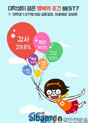 취업포털 잡코리아가 운영하는 아르바이트 포털 알바몬이 최근 대학생 1,071명에게 ‘행복’을 주제로 설문조사를 실시하고 그 결과를 발표했다.
