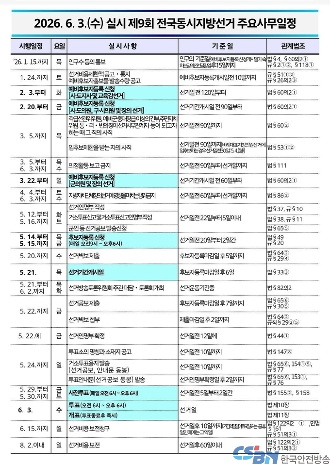 전국 동시 6.3 지방선거 주요사무 일정