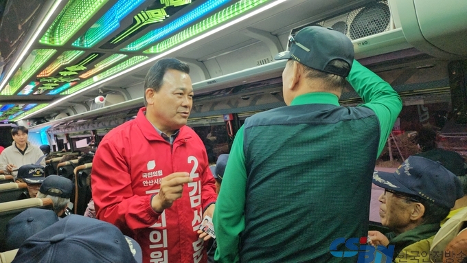 김석훈 국민의힘 안산시갑 국회의원 보궐선거 예비후보가 22일 오전, 안산시 보훈회관을 찾아 야유회를 떠나는 대한민국무공수훈자회 안산시지회 회원들에게 정중한 예우를 갖추며 보훈 복지 강화를 약속했다.