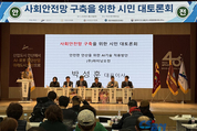 사회안전망 구축을 위한 안산시민 대토론회 사)안산시민회(이병걸 회장) 와 재)국제표준안전재단 경기서부본부(김태연 본부장)가 공동으로 주최했다. 2월24일 안산시청 제2별관 대회의실에서 시민, 산업체, 재난 관련 단체가 참석한 가운데 토론회가 열렸다. 행사 전 국제표준안전재단 강사진에 생활안전교육과 심폐소생술 시연과 체험이 있었다. 심폐소생술 시연은 국제표준규격인 ISO 1024에 정해진 심폐소생술이다. 이병걸 안산시민회 회장은 안산시는, 공단 배후도시로 제조업과 서비스를 기반으로 성장한 도시로 4,16 참사 등 크고 작은 사고, 인권침해 아픔에서 벗어나야 하며, 118개 나라 외국인, 10여만 명 다문화 가족, 9만 7천여 명 어르신에게 행복한 삶을 누릴 수 있는 안전한 안산시로 거듭나고, 생명 존중과 인권회복을 위한 노력이 절실하다고 했다. 이날 토론회는 ▶ 좌장 권창희 교수(한세대학교 교수) 토론자 ▶ 김태연(보건학 박사) ▶ 신은철(칼빈대학교 교수) ▶ 한을수 교수, ▶ 박성훈(마이닝 5,000대표) ▶ 안세환 변호사, 5명에, 토론자가 발제하고 시민과 질의응답 시간을 가졌다. 특히 질병에 취약한 다문화 가족에 다양한 질병 발생과 예방에 대한, 해결 방