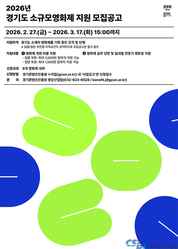 웹포스터(자료 경기도) 경기도와 경기콘텐츠진흥원이 소규모 영화제 활성화를 위해 최대 3천만 원을 지원하는 ‘2026년 경기도 소규모영화제 지원’ 사업 참가자를 3월 17일까지 모집한다. 2019년 시작된 이번 사업은 대규모 상업영화 중심의 상영 환경에서 벗어나 독립·예술영화의 주요 유통창구 역할을 하는 소규모 영화제를 지원함으로써 지역 영화 생태계의 자생력을 강화하기 위해 추진 중이다. 소규모영화제 지원사업은 대관료, 상영료, 홍보비 등 영화제 개최에 필요한 비용을 지원한다. 올해는 총 1억 원의 예산을 투입해 6개 내외 영화제를 지원하며, 심사결과에 따라 ‘집중지원 부문’은 최대 3천만 원, ‘일반지원 부문’은 최대 1천500만 원까지 차등 지원한다. 지원 대상은 총예산 1억 원 이하 소규모영화제로, 개·폐막식을 포함해 2일 이상 개최하고 10편 이상의 영화를 상영하며 올해 11월 30일 내 폐막하는 경기도 소재 영화제 개최 기관 및 단체다. 선정된 영화제에는 개최 전 맞춤형 전문가 멘토링을 지원해 기획 완성도와 운영 역량을 높일 계획이다. 아울러 오는 4월에는 영화제 실무에 관심 있는 도민을 대상으로 국내 주요 영화제 프로그래머 초청 실무 강연도 운영한다