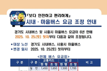 시흥시 경기도 시내버스, 시흥시 마을버스 요금인상 표(자료 시흥시) 시흥시(시장 임병택)는 오는 10월 25일 첫차부터 경기도 시내버스 및 시흥시 마을버스 요금을 조정한다. 이번 요금 조정은 지난 6년간 유지돼 온 요금 체계를 현실에 맞게 조정해 버스 운행의 안정성과 서비스 품질을 지키기 위한 불가피한 결정이다. 최근 수년간 최저임금 인상, 주 52시간 근무제 도입, 운영비 상승 등으로 버스 운수업체의 경영 여건이 악화하면서 일부 노선의 운행이 위태로운 상황에 놓였다. 이에 시는 시민의 일상을 지키는 대중교통 서비스가 중단되지 않도록 요금 조정을 추진했다. 조정된 요금은 교통카드 기준으로, 경기도 시내버스 일반형의 경우 ▲성인 1,450원에서 1,650원(200원 인상)으로 ▲청소년 1,010원에서 1,160원(150원 인상)으로 ▲어린이 730원에서 830원(100원 인상)으로 오르게 된다. 시흥시 마을버스 요금은 ▲성인 1,350원에서 1,650원(300원 인상)으로 ▲청소년 950원에서 1,160원(210원 인상)으로 ▲어린이 680원에서 830원(150원 인상)으로 조정된다. 시는 이번 요금 조정을 통해 확보된 재원을 경기도 공공관리제 확대, 배차 간