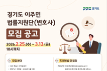 웹포스터(자료 경기도) 경기도는 3월 13일까지 ‘경기도 이주민 법률지원단 지원사업’에 참여할 변호사를 모집한다. 이주민 법률지원단은 언어·문화적 장벽과 정보 부족으로 법률서비스 이용에 어려움을 겪는 도내 취약계층 이주민에게 전문적인 소송 지원을 제공하기 위해 기획됐다. 도는 ▲민사(노동 포함) ▲가사 ▲행정(출입국 포함) 분야를 중심으로 20명 내외의 변호사 인력을 구성해, 체계적이고 신뢰할 수 있는 법률 지원 체계를 구축할 계획이다. 모집 대상은 변호사 자격을 보유하고 2년 이상의 실무경력을 갖춘 사람이다. 이주민·외국인 관련 사건 경험이 있거나 관련 교육을 이수한 경우 가점이 부여된다. 선정된 변호사는 의무교육을 이수한 뒤 4월 초부터 사건 지원을 시작한다. 위촉 기간은 위촉일로부터 2026년 12월 31일까지다. 도는 과도한 수임료 부담을 방지하기 위해 사건 유형별 권고 수임료 가이드라인을 제시하고, 표준계약서 사용을 통해 계약의 투명성을 높일 계획이다. 실제 수임료는 의뢰인과 변호사 간 계약에 따라 결정된다. 참여를 희망하는 변호사는 경기도이민사회통합지원센터 누리집(gmis.or.kr)에서 제출서류를 내려받아 3월 13일까지 전자우편으로 제출하면 된