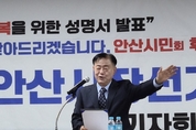 (한국안전방송:김익주 기자) 안산시민회 이병걸 회장은 4월 16일(목) 오후 5시, 안산시의회 3층 대회의실에서 기자회견을 열고 안산시장 출마를 공식 선언했다. 이날 기자회견에는 시민회 관계자와 지역 지지자 등 약 200여 명이 참석해 높은 관심 속에 진행됐으며, 현장은 시민주권 회복에 대한 공감과 변화에 대한 기대감으로 뜨거운 분위기를 보였다. 안산시민회 이병걸 회장은 16일 안산시의회 대회의실에서 기자회견을 열고 안산시장 출마를 공식 선언했다. (사진: 최용수 기자) 이번 출마는 안산시민회 이사회 투표를 통해 시민회 대표 후보로 선정된 데 따른 것으로, 시민사회 기반 후보라는 점에서 의미를 더하고 있다. 이병걸 회장은 출마 배경에 대해 “현재 안산은 시민이 주인이 아닌, 주권이 실종된 도시로 전락하고 있다”며 “이대로는 안산의 미래를 담보할 수 없다는 절박한 심정으로 출마를 결심했다”고 밝혔다. 이어 “안산의 발전은 특정 정치세력이나 일부 권력자의 전유물이 아니라, 시민 모두가 ‘내가 안산의 주인’이라는 인식을 가질 때 가능하다”며 ‘시민주권 시대’ 실현을 핵심 가치로 제시했다. 이 회장은 안산 정치의 구조적 문제로 △ 정당 중심의 패거리 정치 △ 지역