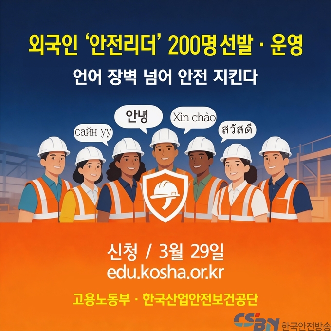 고용노동부와 한국산업안전보건공단(이사장 김현중, 이하 공단)은 외국인 노동자의 산업재해를 선제적으로 예방하기 위해 ‘외국인 안전리더’ 200명을 선발·운영한다고 22일 밝혔다.